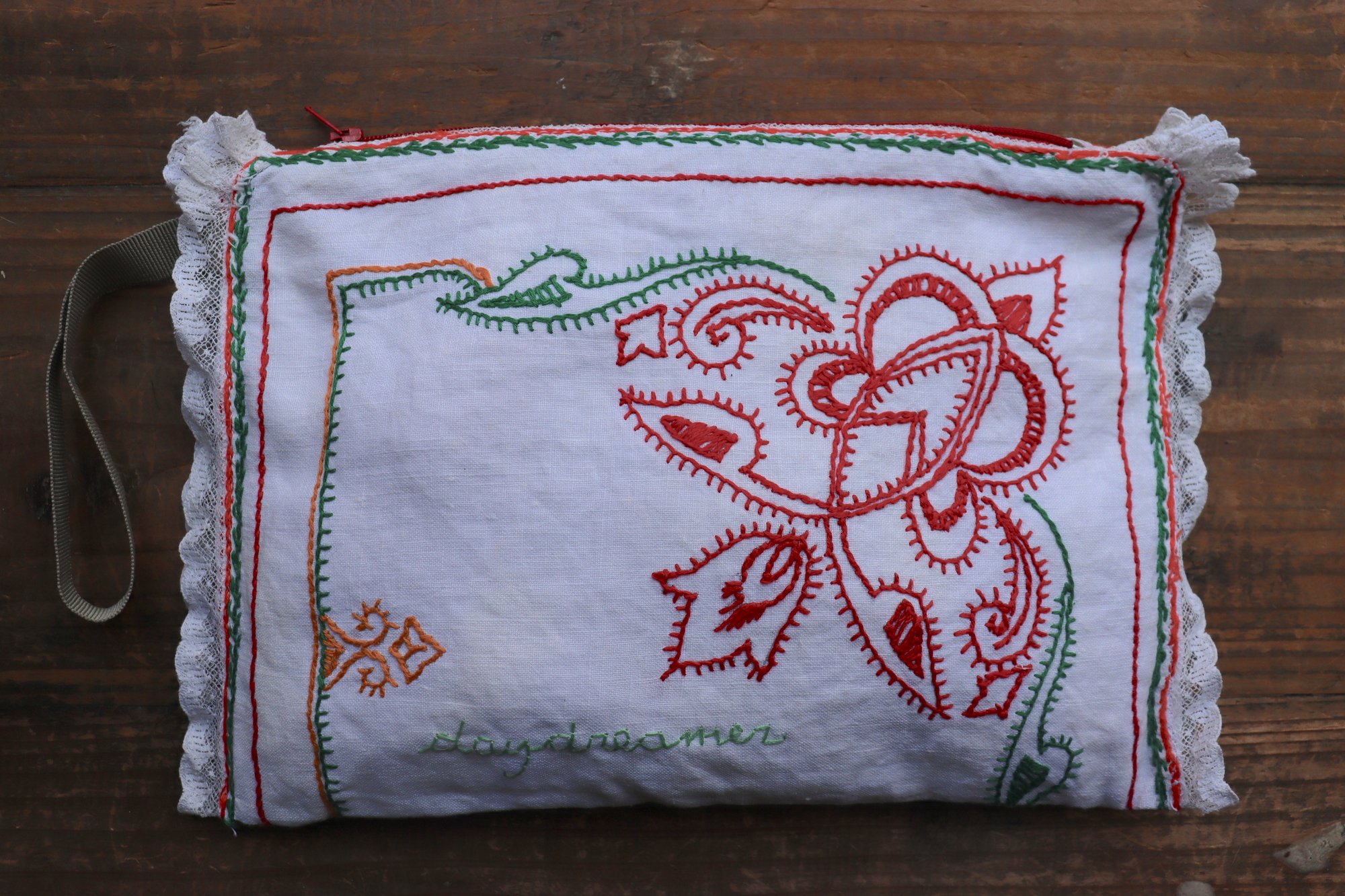 Borsa da polso realizzata con antichi tessuti e ricamata a mano.